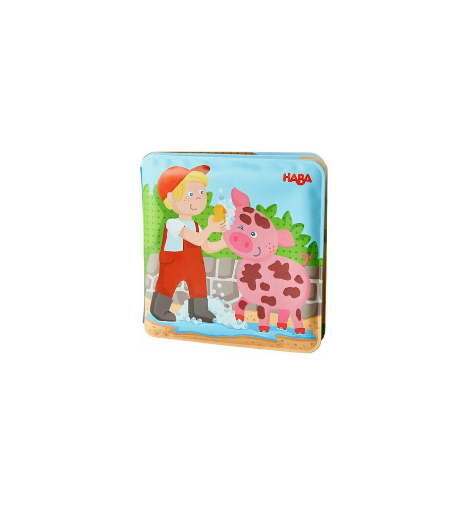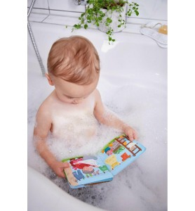 Το βιβλίο μπάνιου της εταιρίας Haba, είναι εικονογραφημένο με ζωηρά χρώματα και ενδιαφέρουσες ιστοριούλες για να κερδίζουν το ενδιαφέρον και να εξάπτουν τη φαντασία των μικρών μας φίλων. Τα παιχνίδια μπάνιου αποτελούν τον πιο απλό και διαδραστικό τρόπο για να προσφέρουν έντονο παιχνίδι και ατελείωτη διασκέδαση ακόμη και σε περιορισμένους χώρους. Έχουν εκπαιδευτικό χαρακτήρα, μιας και βοηθούν το παιδί να εξασκήσει τις κινητικές του δεξιότητες ενώ παράλληλα, χάρη στα έντονά τους χρώματα, διεγείρουν τις οπτικές του αισθήσεις, κρατώντας το απασχολημένο κατά τη διάρκεια του μπάνιου. Τέλος, επιδρούν θετικά και στην ψυχολογία του παιδιού, καθώς το βοηθούν να εξοικειωθεί με το νερό και να βλέπει την ώρα του μπάνιου ως μία ευχάριστη διαδικασία.