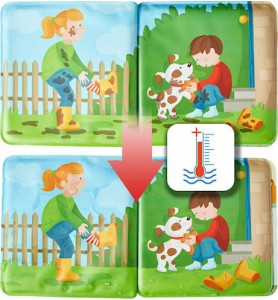 Το βιβλίο μπάνιου της εταιρίας Haba, είναι εικονογραφημένο με ζωηρά χρώματα και ενδιαφέρουσες ιστοριούλες για να κερδίζουν το ενδιαφέρον και να εξάπτουν τη φαντασία των μικρών μας φίλων. Τα παιχνίδια μπάνιου αποτελούν τον πιο απλό και διαδραστικό τρόπο για να προσφέρουν έντονο παιχνίδι και ατελείωτη διασκέδαση ακόμη και σε περιορισμένους χώρους. Έχουν εκπαιδευτικό χαρακτήρα, μιας και βοηθούν το παιδί να εξασκήσει τις κινητικές του δεξιότητες ενώ παράλληλα, χάρη στα έντονά τους χρώματα, διεγείρουν τις οπτικές του αισθήσεις, κρατώντας το απασχολημένο κατά τη διάρκεια του μπάνιου. Τέλος, επιδρούν θετικά και στην ψυχολογία του παιδιού, καθώς το βοηθούν να εξοικειωθεί με το νερό και να βλέπει την ώρα του μπάνιου ως μία ευχάριστη διαδικασία.
